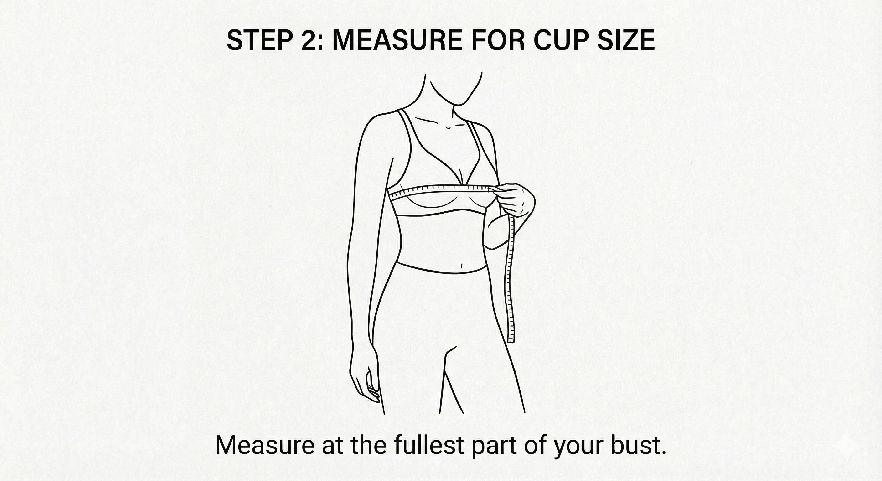 Cup size is determined by the difference between your bust and underbust measurements.
